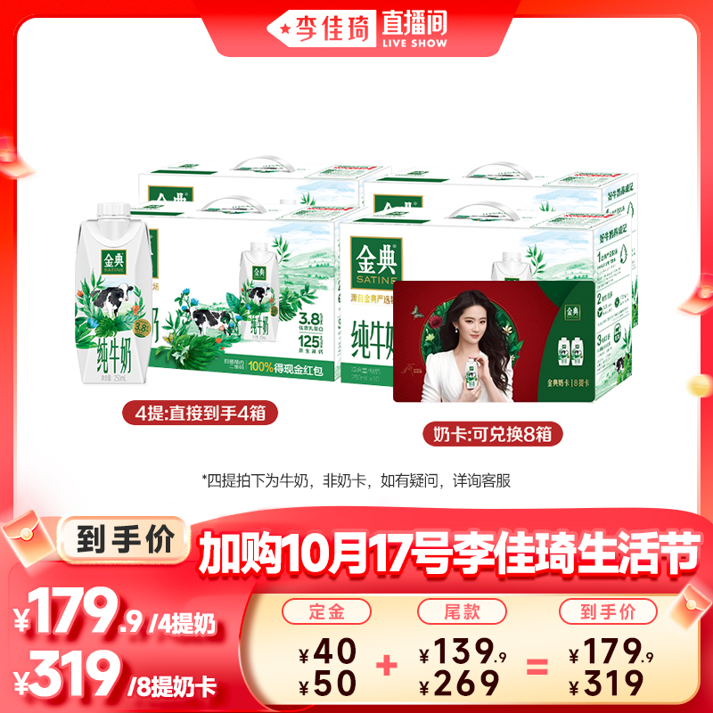 60、【加购10月17号李佳琦生活节】金典纯牛奶梦幻盖*4提牛奶/8提奶卡