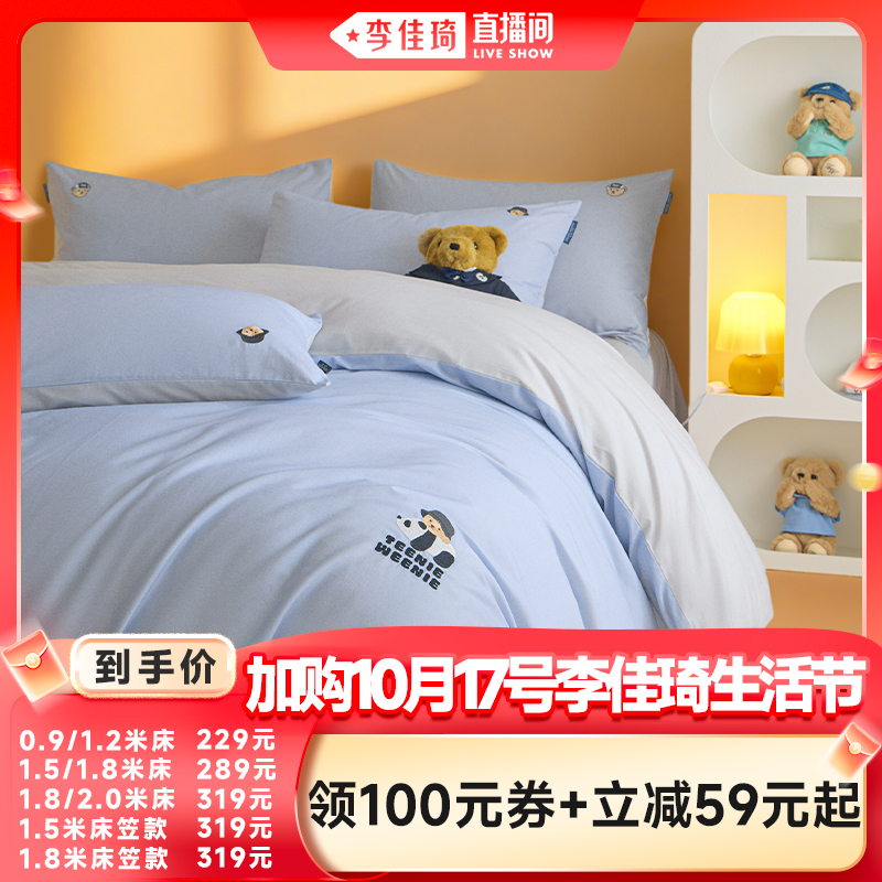 45、【加购10月17号李佳琦生活节】TeenieWeenie刺绣全棉轻磨毛四件套