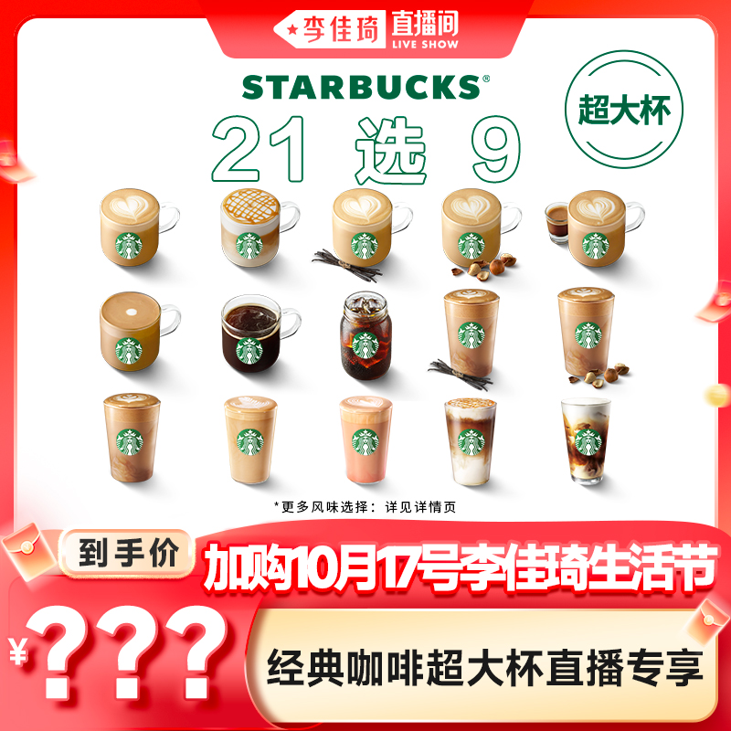 97、【加购10月17号李佳琦生活节】星巴克经典咖啡超大杯9次囤囤卡