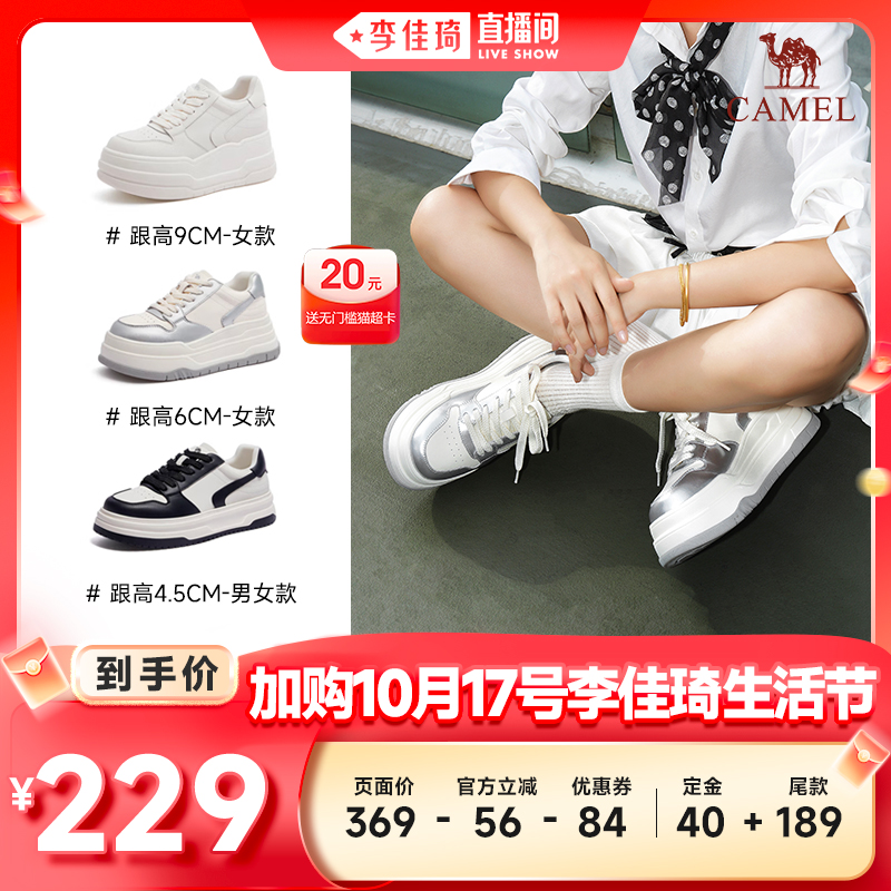 2、【加购10月17号李佳琦生活节】骆驼情侣厚底新品百搭板鞋9cm/6cm