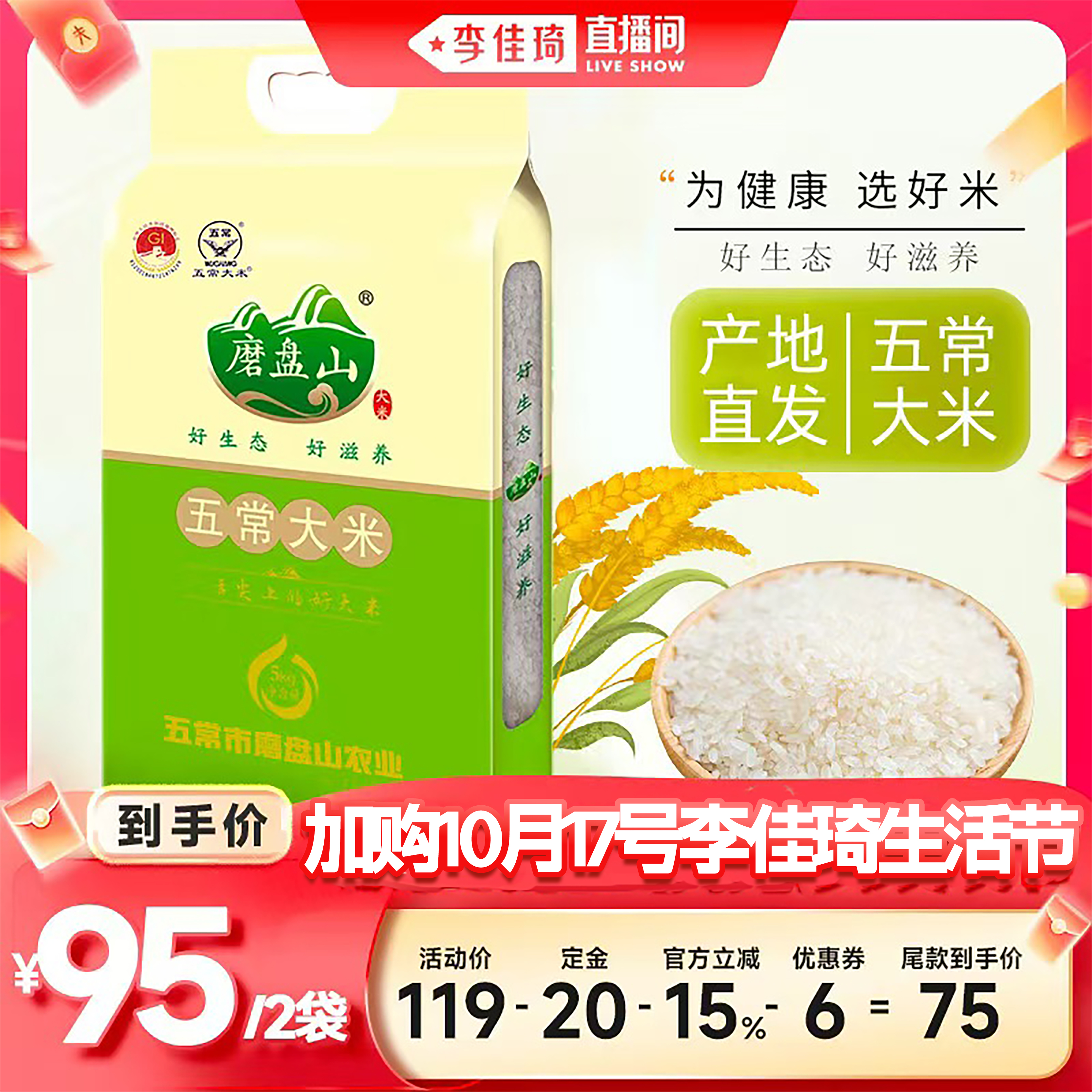 132、【加购10月17号李佳琦生活节】磨盘山五常大米新米5kg/袋拍1发2