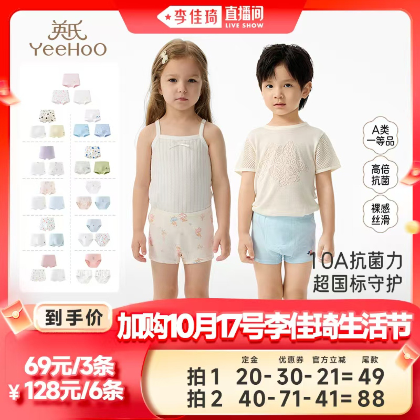 84、【加购10月17号李佳琦生活节】英氏儿童10A抗菌内裤平角超柔透气
