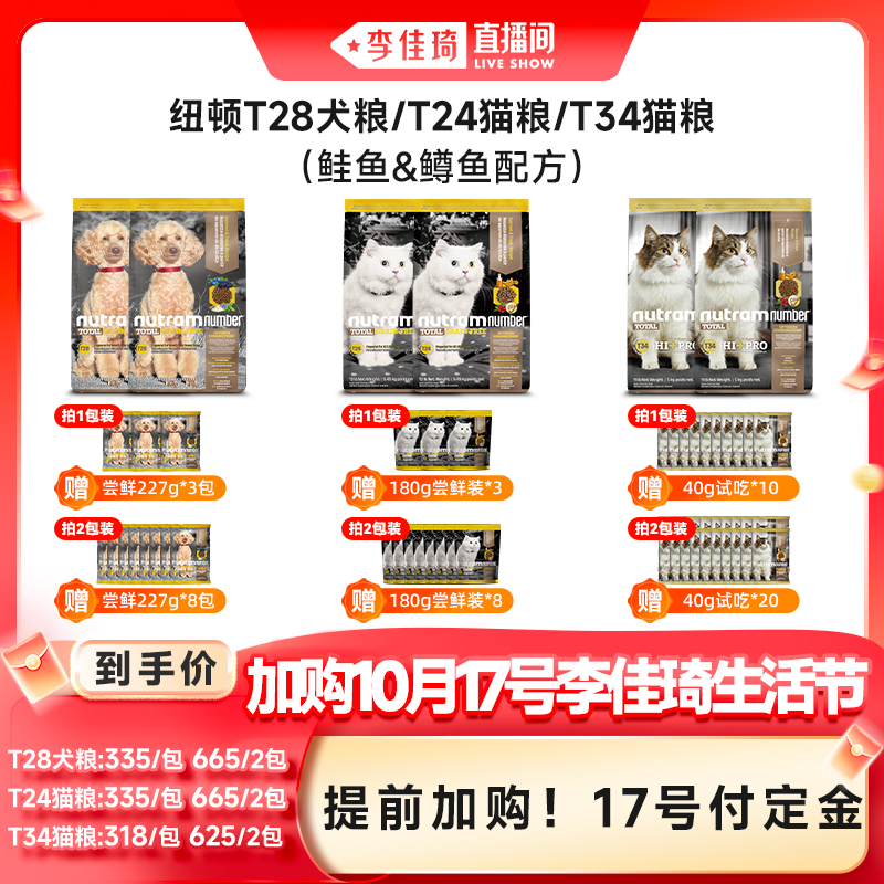118、【加购10月17号李佳琦生活节】纽顿鱼肉味T28狗粮T24猫粮T34猫粮