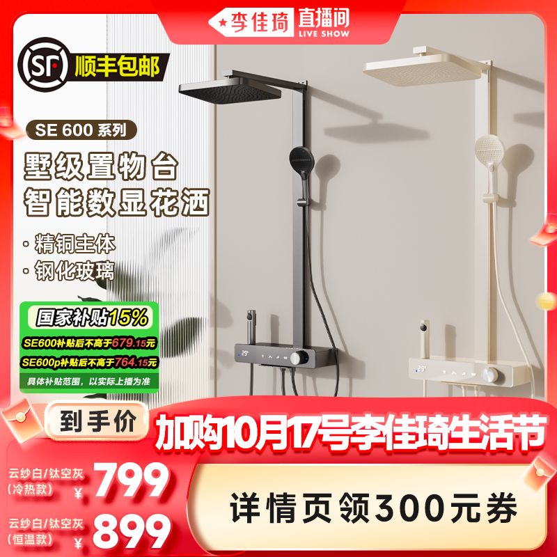 148、【加购10月17号李佳琦生活节】四季沐歌卫浴方管置物数显琴键花洒