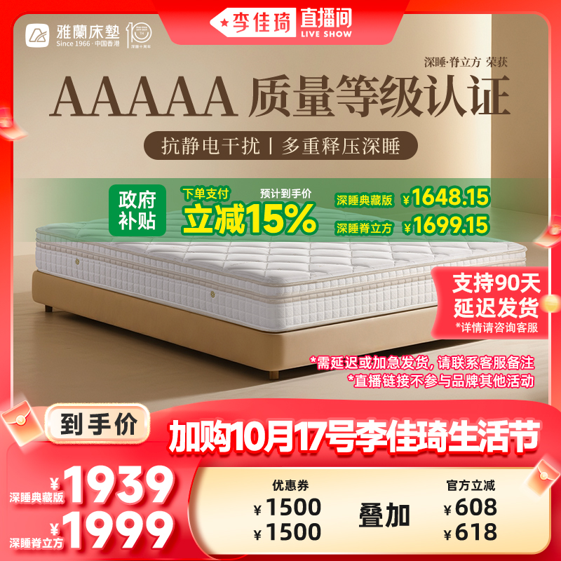 22、【加购10月17号李佳琦生活节】雅兰乳胶床垫 深睡典藏版/脊立方