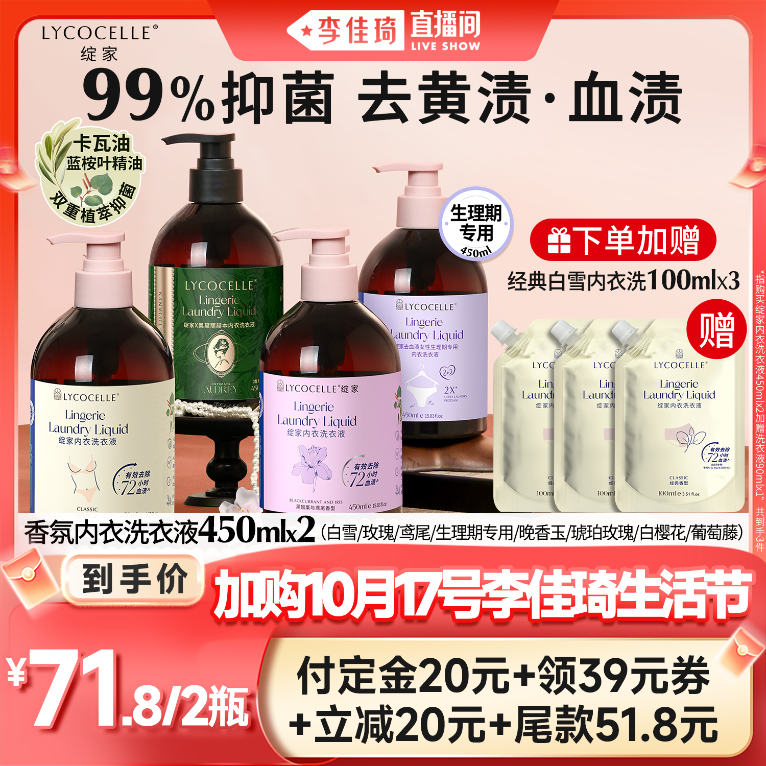 65、【加购10月17号李佳琦生活节】绽家香氛内衣洗衣液抑菌去血渍黄渍