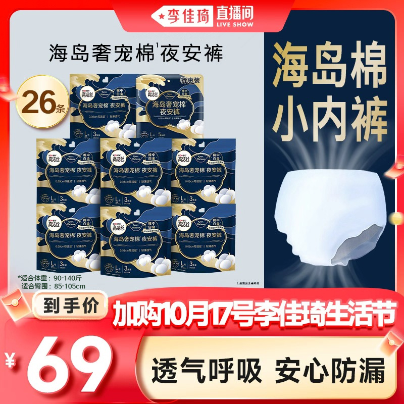 67、【加购10月17号李佳琦生活节】高洁丝海岛棉夜安裤卫生巾防漏超薄