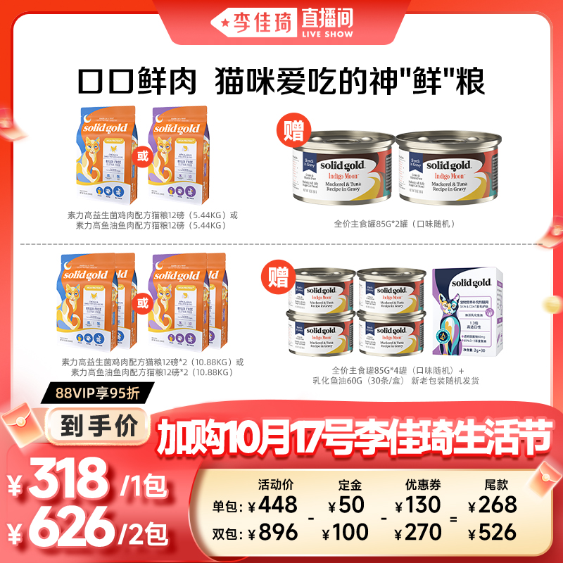 152、【加购10月17号李佳琦生活节】素力高鲜肉高蛋白猫粮5.44kg
