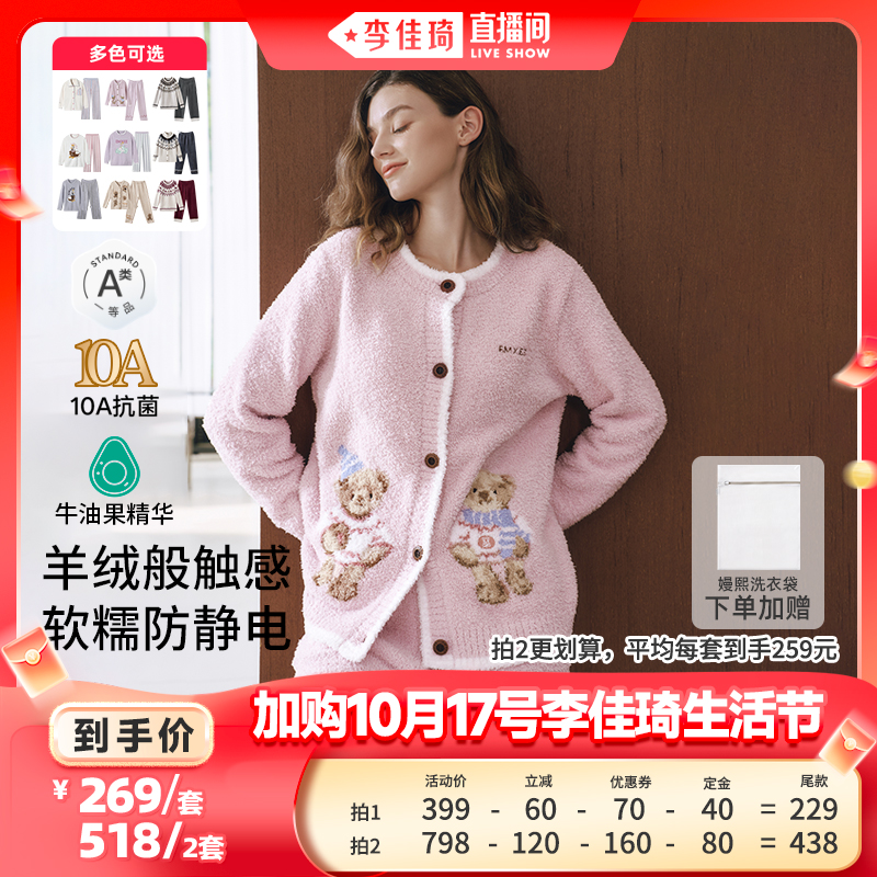120、【加购10月17号李佳琦生活节】嫚熙秋冬牛油果半边绒月子服家居服