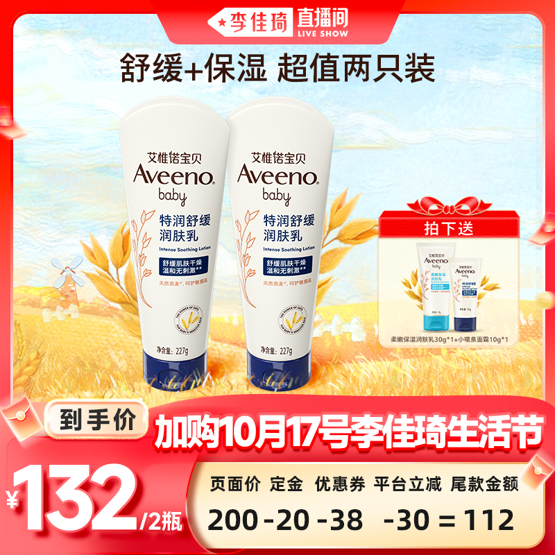 56、【加购10月17号李佳琦生活节】aveeno艾惟诺宝贝特润润肤乳227g*2