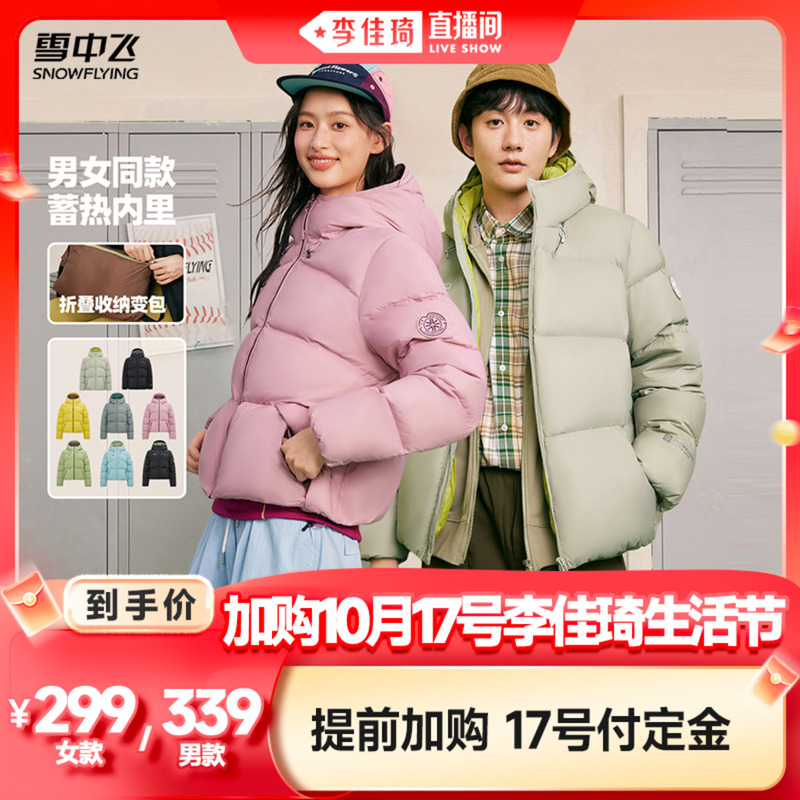 112、【加购10月17号李佳琦生活节】雪中飞男女情侣短款多彩面包羽绒服
