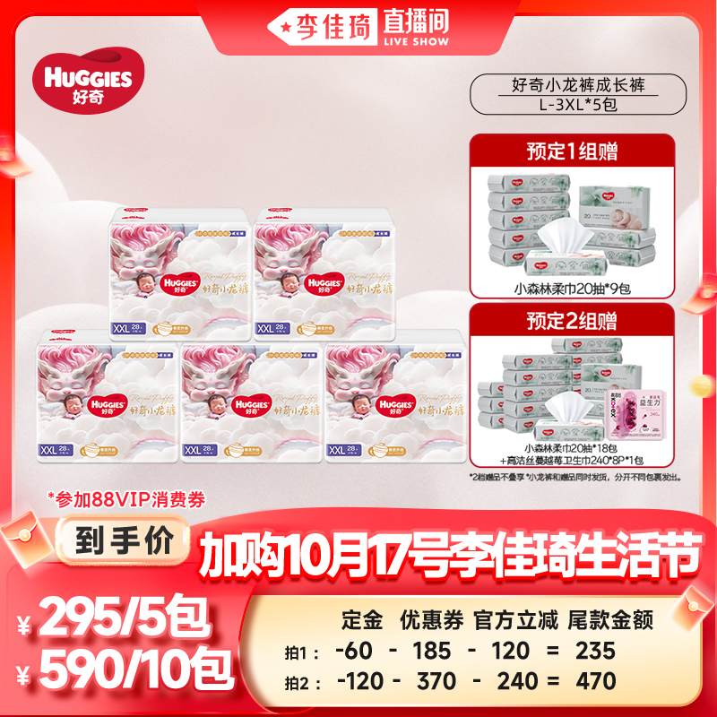 123、【加购10月17号李佳琦生活节】好奇小龙裤纸尿裤NB-XL*5包