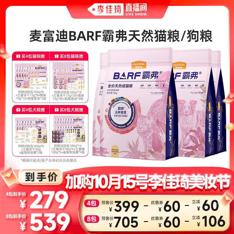 14、【加购10月15号李佳琦美妆节】麦富迪BARF霸弗天然猫粮/犬粮4/8包