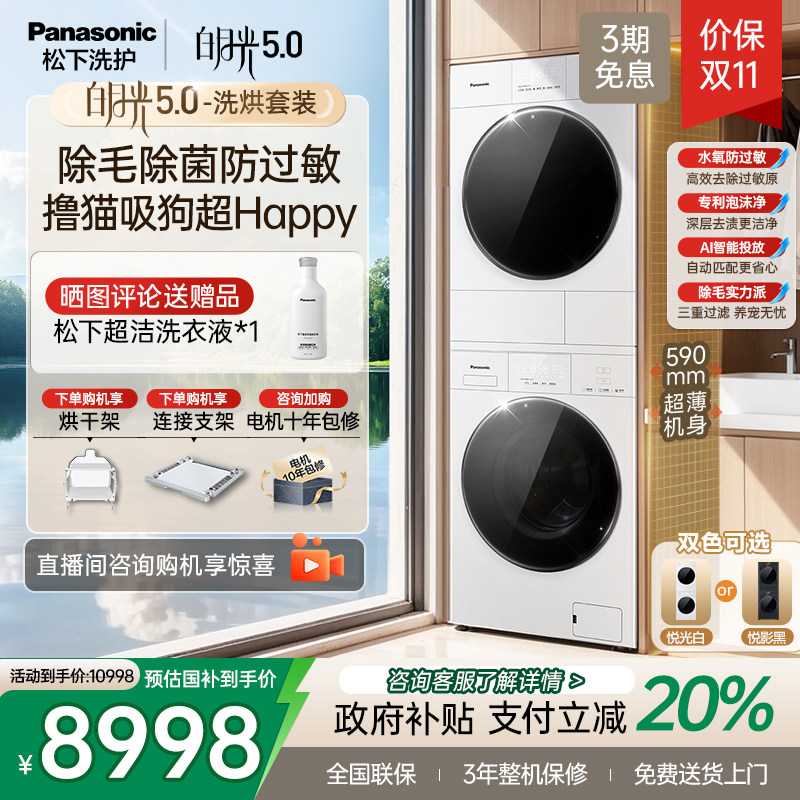 404、[新品白月光5.0]松下家用全自动热泵大容量超薄洗衣机洗烘套装