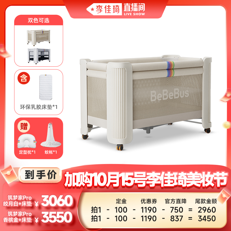 12、【加购10月15号李佳琦美妆节】BeBeBus筑梦家婴儿床可折叠可移动