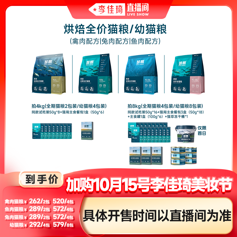 16、【加购10月15号李佳琦美妆节】鲜朗烘焙猫粮全期全价禽肉鱼肉兔肉