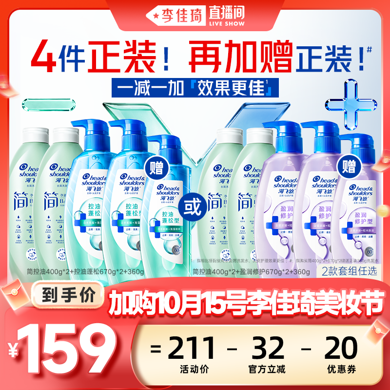 68、【加购10月15号李佳琦美妆节】海飞丝方程式控油蓬松/简洗发水