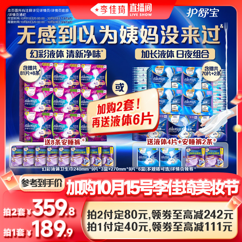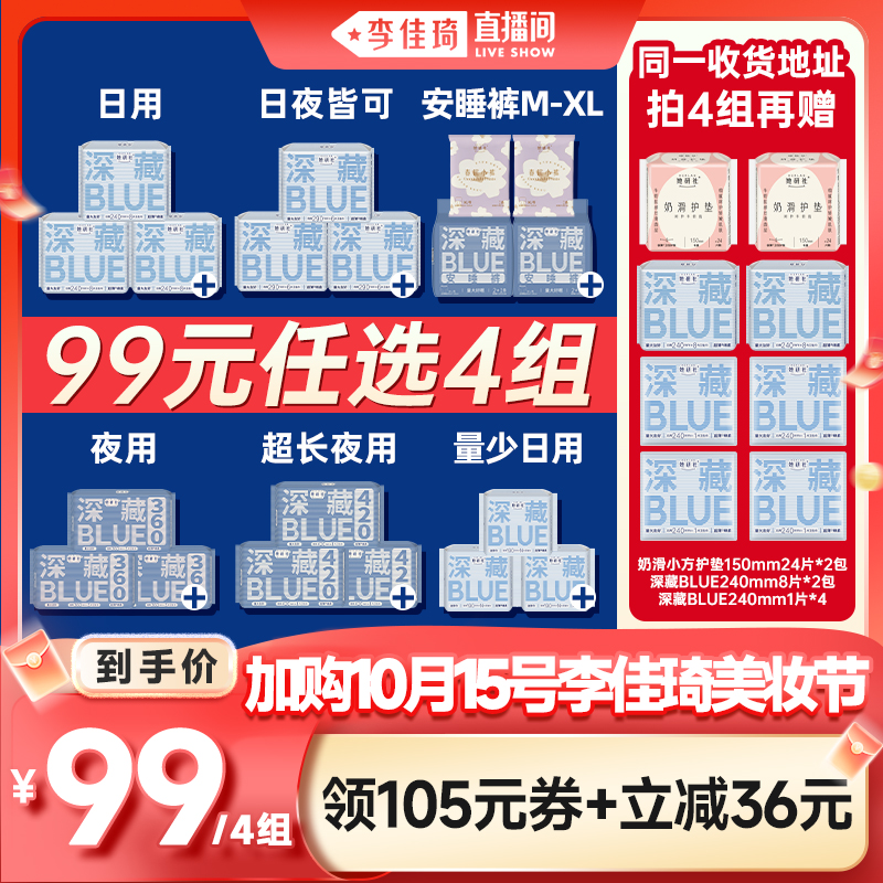 72、【加购10月15号李佳琦美妆节】拍4组!她研社卫生巾安睡裤BLUE干爽