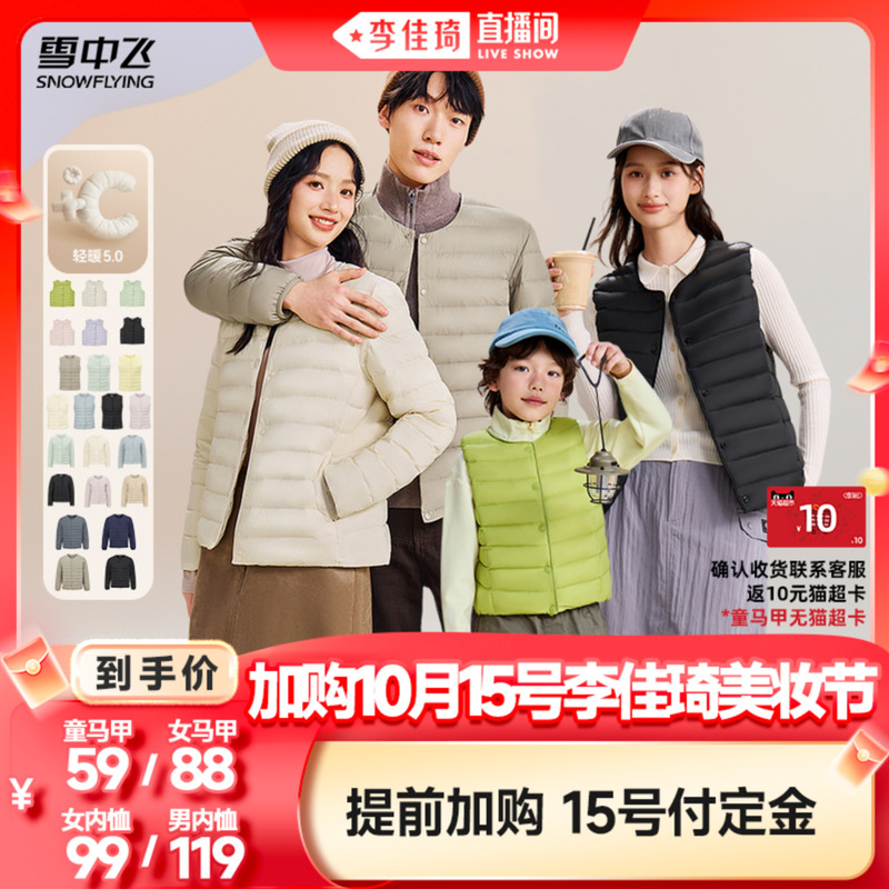 5、【加购10月15号李佳琦美妆节】雪中飞男女童亲子羽绒马甲/内恤
