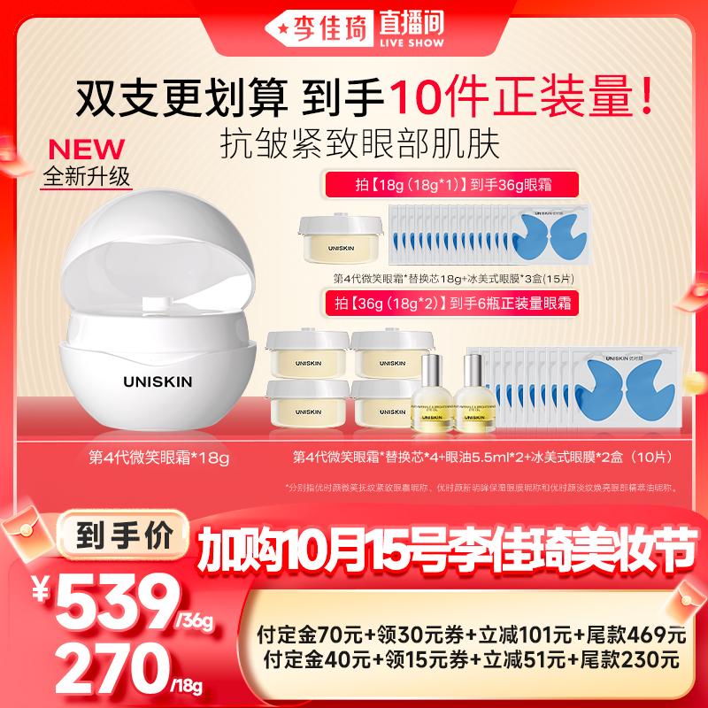 366、【李佳琦直播间】优时颜第4代微笑眼霜保湿抗皱抚纹紧致眼霜