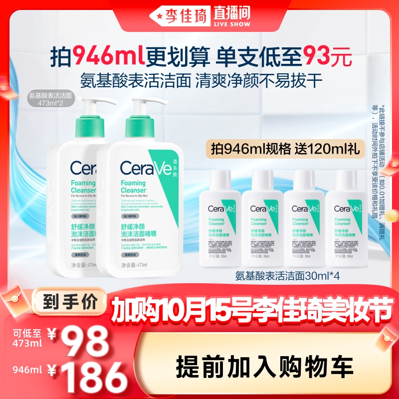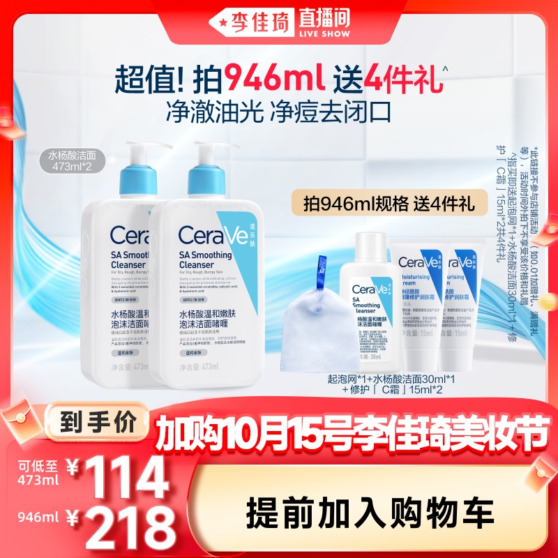 407、【加购10月15号李佳琦美妆节】CeraVe适乐肤水杨酸洗面奶*