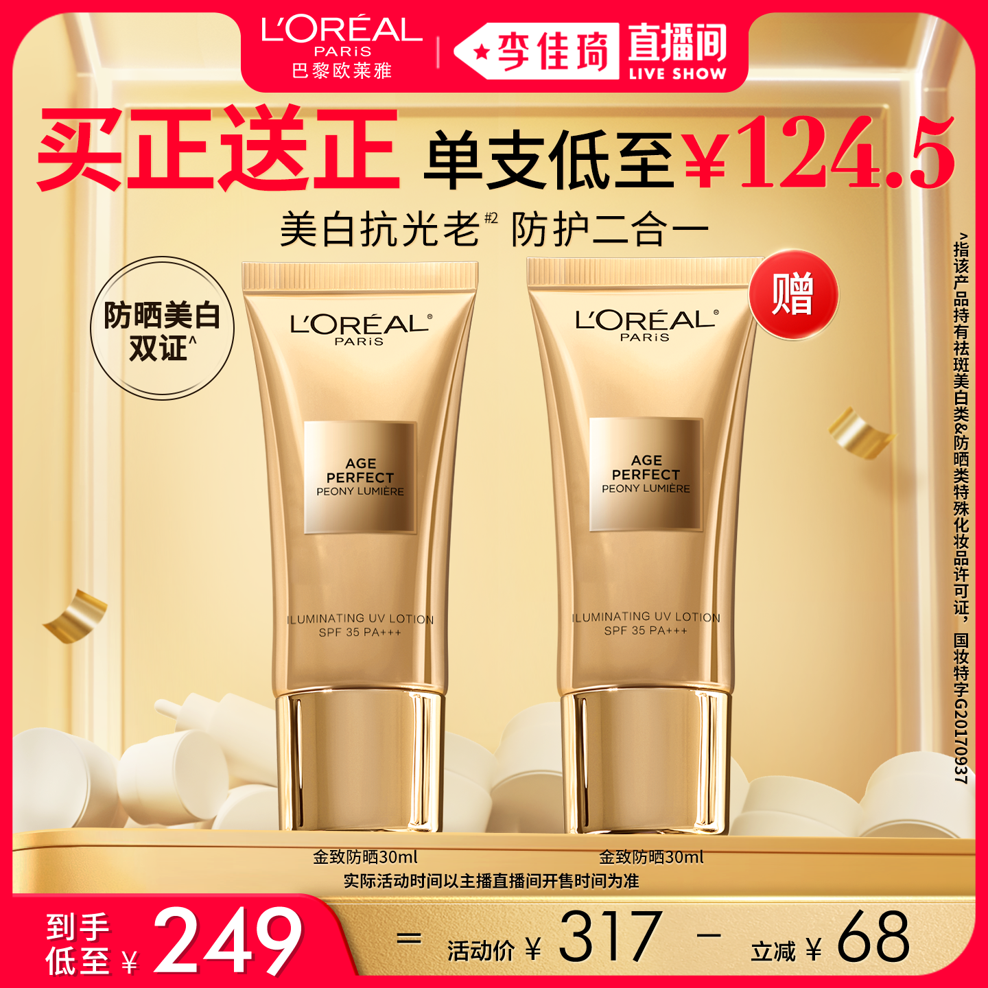 2、【加购10月15号李佳琦美妆节】欧莱雅小金管小银管防晒隔离霜*
