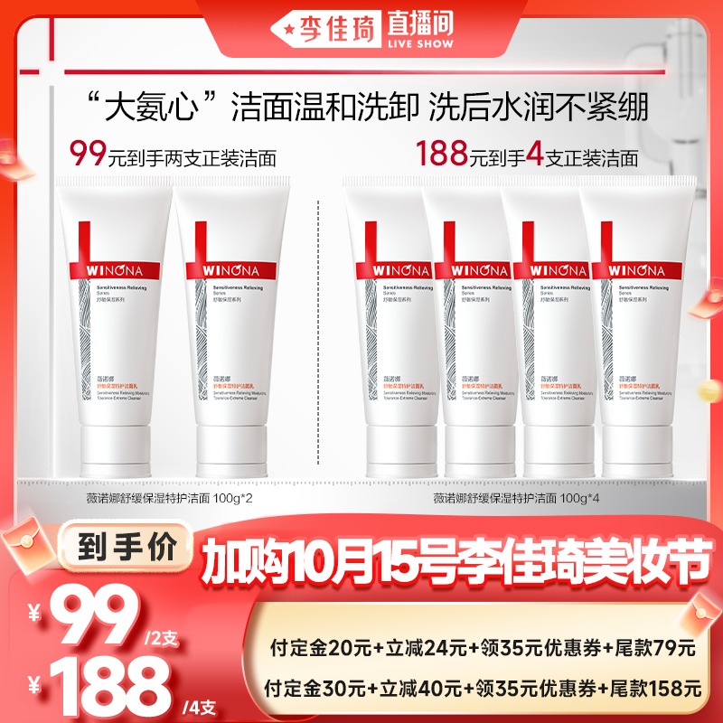 99、【加购10月15号李佳琦美妆节】薇诺娜舒敏保湿特护洁面乳官方正品