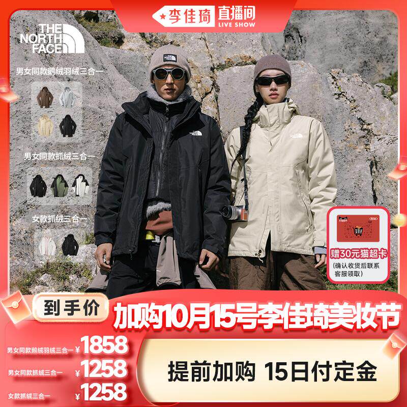 21、【加购10月15号李佳琦美妆节】北面男女款羽绒三合一/抓绒三合一