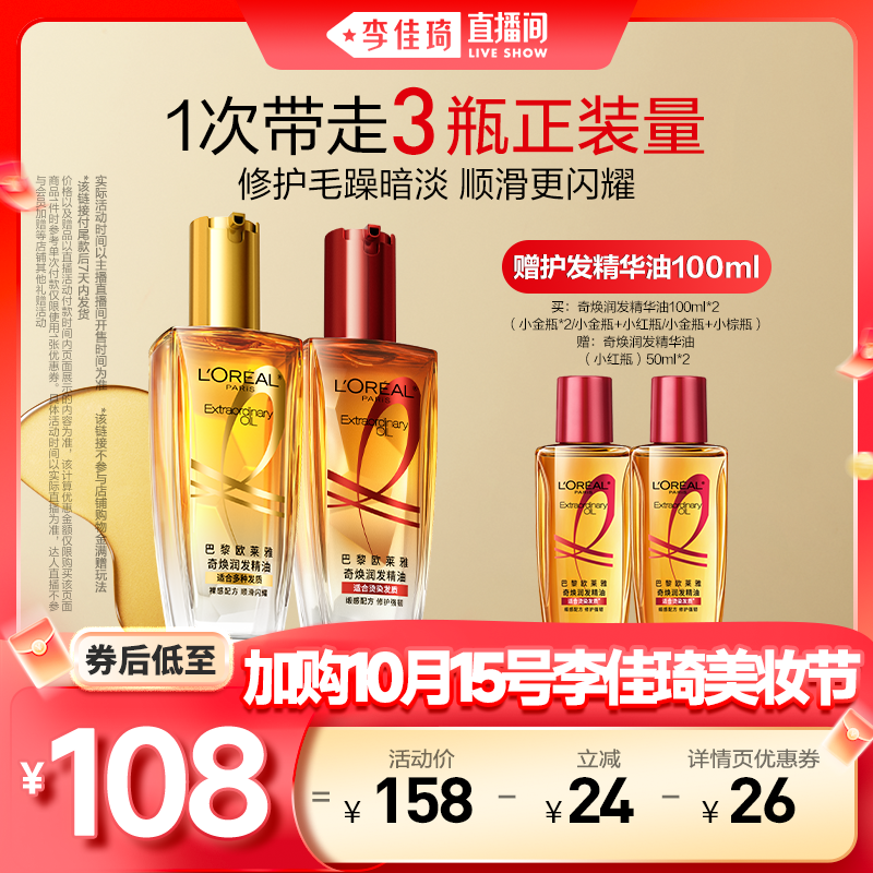 59、【加购10月15号李佳琦美妆节】欧莱雅小金瓶护发精油女柔顺顺滑*