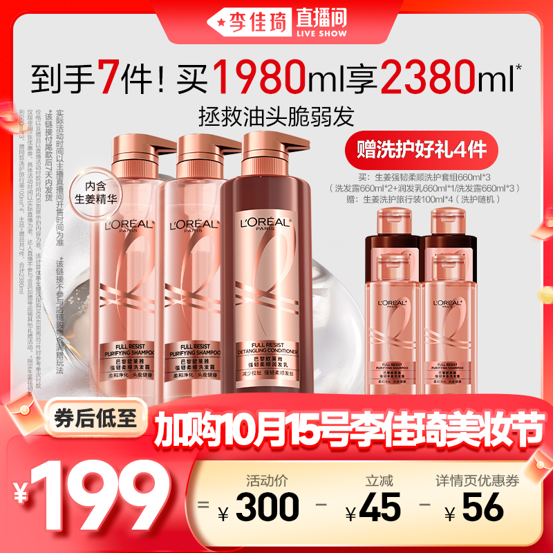 57、【加购10月15号李佳琦美妆节】欧莱雅活力姜洗护套装强韧发丝*