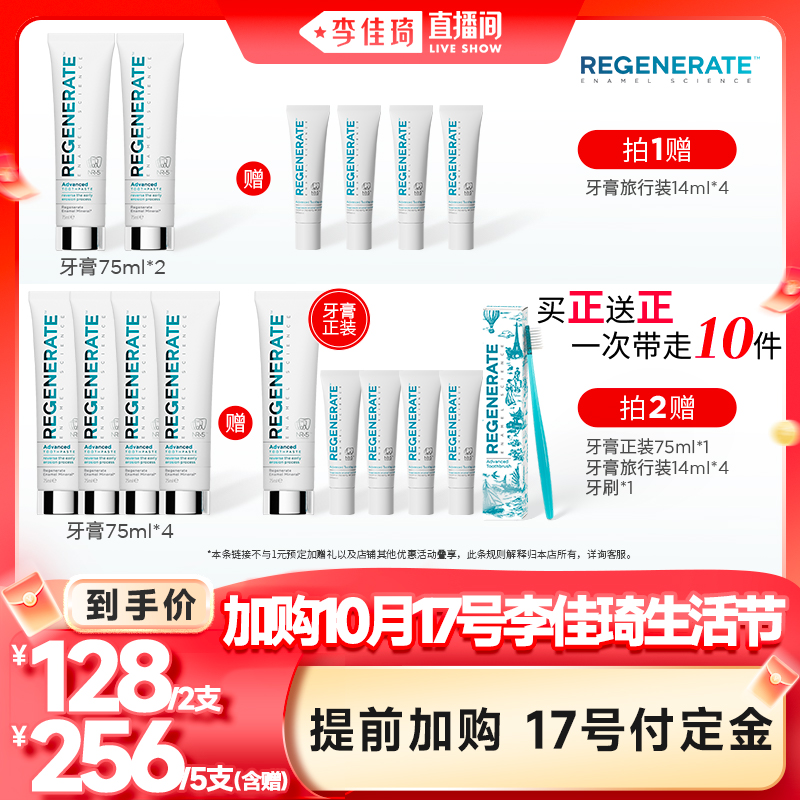 358、【加购10月17号李佳琦生活节】regenerate呵护牙膏75ml*2支