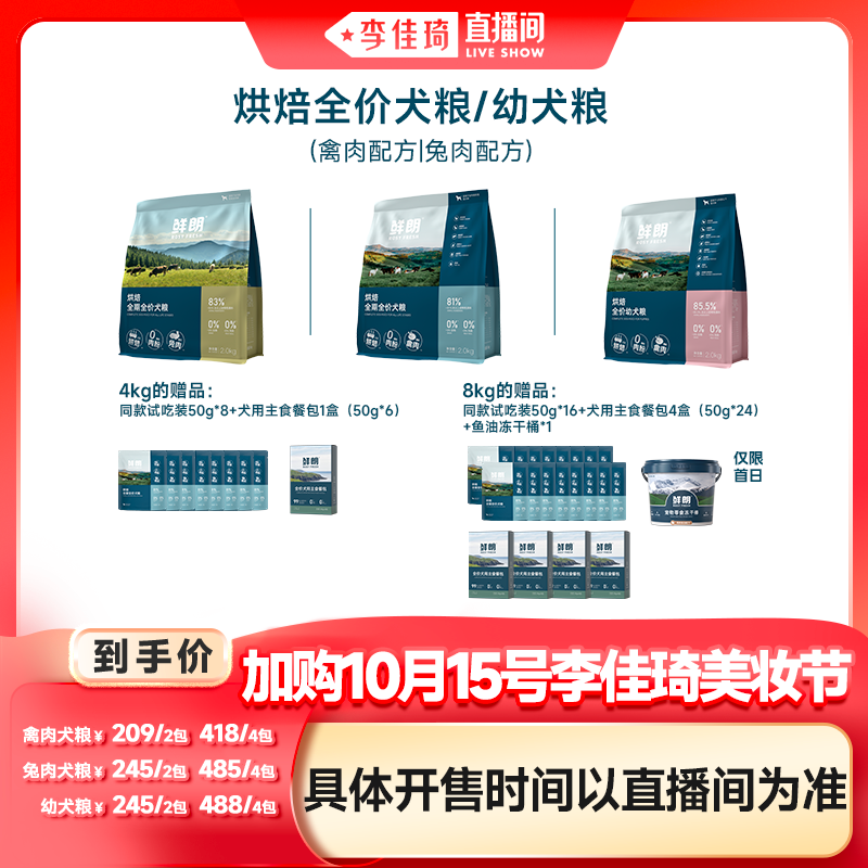 17、【加购10月15号李佳琦美妆节】鲜朗烘焙犬粮狗粮全期全价禽肉兔肉