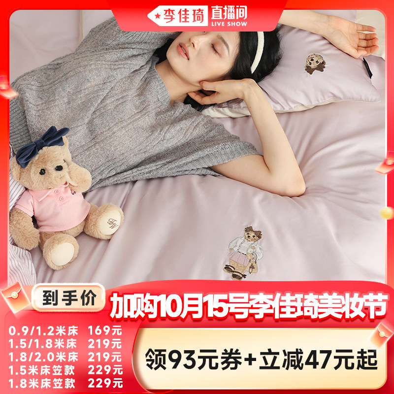 23、【加购10月15号李佳琦美妆节】TeenieWeenie小熊刺绣全棉四件套