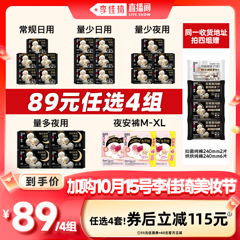 62、【加购10月15号李佳琦美妆节】高洁丝阳光烘烘纯棉日夜组合卫生巾
