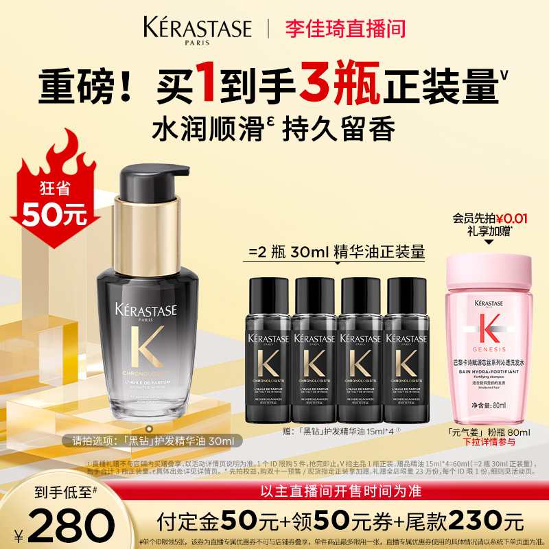 51、【加购10月15号李佳琦美妆节】^卡诗黑钻护发精油头发亮泽柔顺*