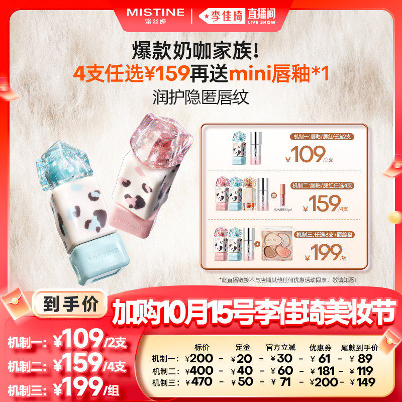 80、【加购10月15号李佳琦美妆节】Mistine奶咖唇釉腮红液面综盘组合
