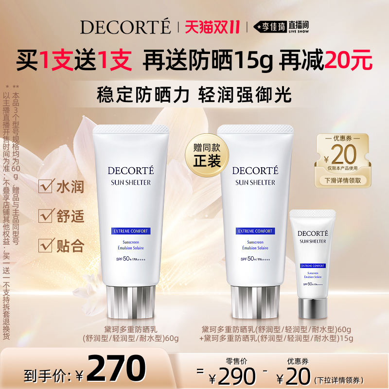 383、【加购10月15号李佳琦美妆节】黛珂多重防晒乳60g通勤隔离水润