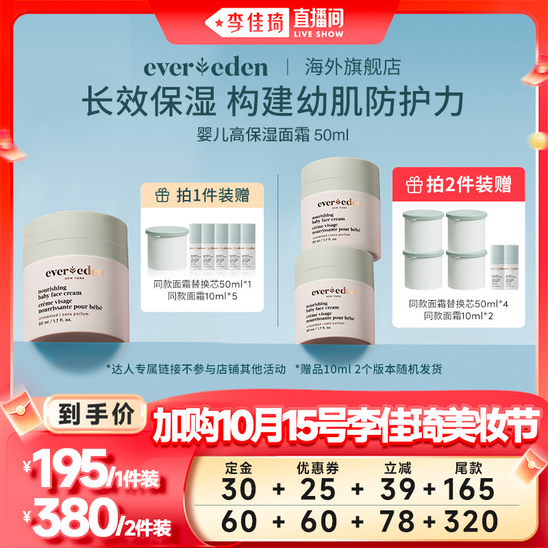 39、【加购10月15号李佳琦美妆节】Evereden安唯伊婴儿高保湿面霜50ml