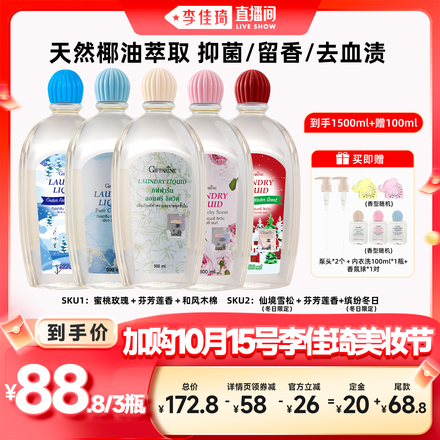 393、【加购10月15号李佳琦美妆节】芝芙莲内衣洗衣液抑菌留香500ml*3