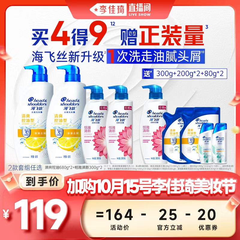 69、【加购10月15号李佳琦美妆节】海飞丝清爽控油/丝质柔滑洗发水