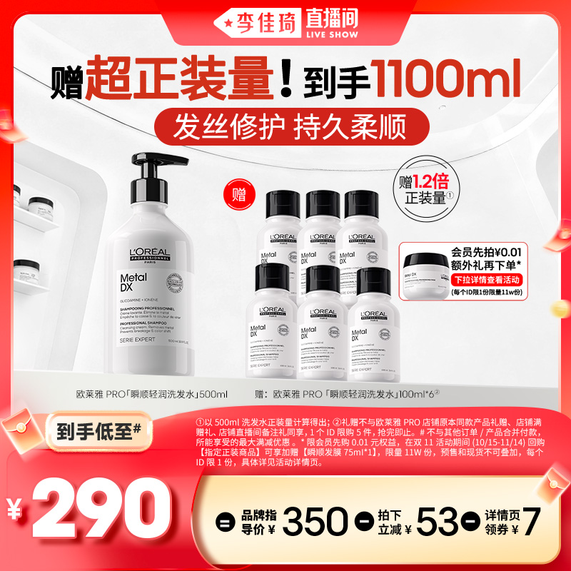 54、【加购10月15号李佳琦美妆节】欧莱雅PRO瞬顺轻润洗发水修护柔顺*