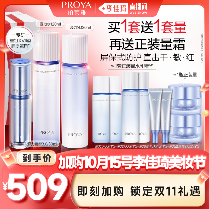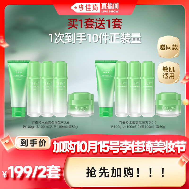 327、【加购10月15号李佳琦美妆节】百雀羚高保湿2.0水乳套装补水保湿