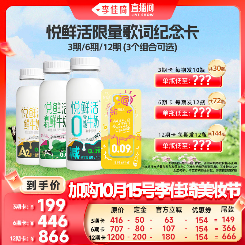 26、【加购10月15号李佳琦美妆节】悦鲜活限量歌词纪念卡3期/6期/12期