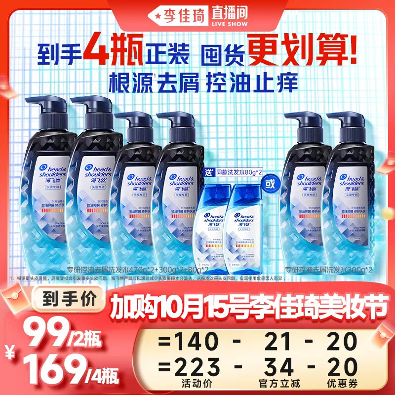 67、【加购10月15号李佳琦美妆节】海飞丝专研控油/去屑止痒洗发水
