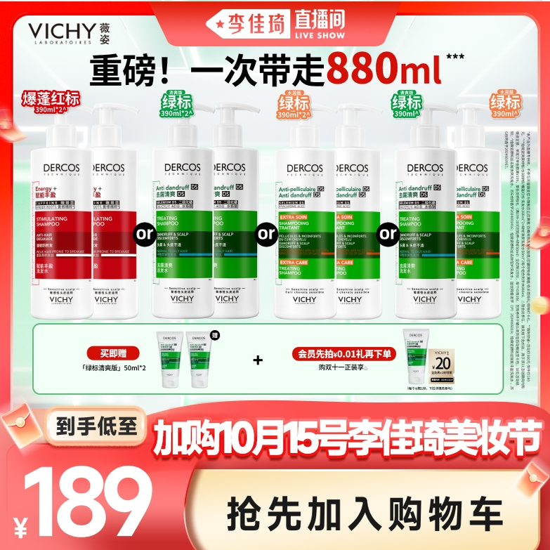 45、【加购10月15号李佳琦美妆节】薇姿去屑绿标爆蓬红标洗发水*