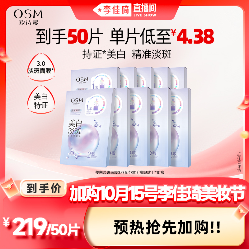 82、【加购10月15号李佳琦美妆节】欧诗漫美白淡斑面膜提亮保湿