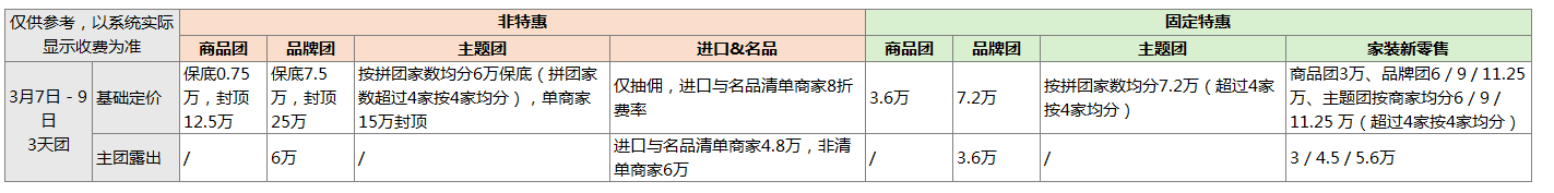 备注:特惠的品牌和类目,参考日常的特惠品牌和类目,收费按照以上表格为准;万以“人民币”计。